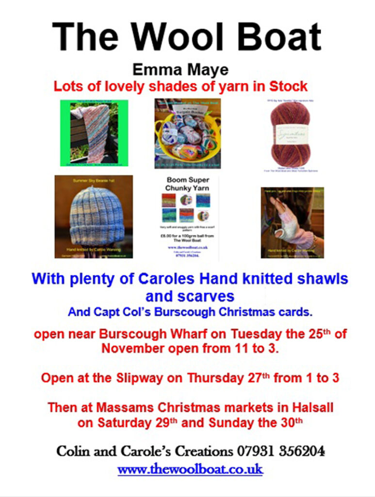 Burscough Wharf, Slipway, and Massams Christmas Markets hopefully no weather dependent this week!