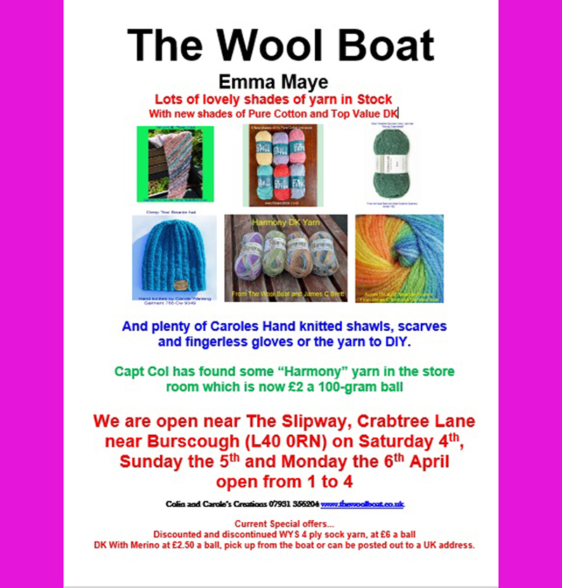 Hope to see aboard and may be sat in the Captain’s Chair to select your woolly treats or start your next project.