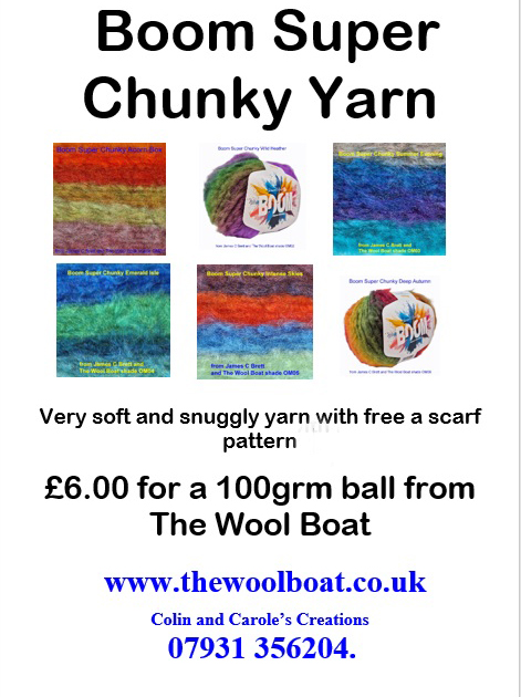 J C Bretts Boom Super Chunky weight knitting yarn in a bright range of shades available from The Wool Boat.