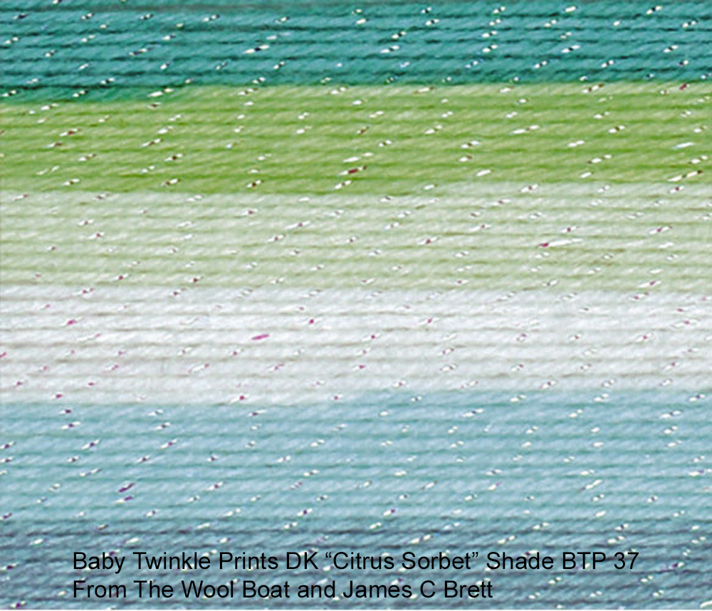 New shade of Party Time stripes in stock on The Wool Boat today. “Lime cordial”. We got a stock of 30 balls, but l’ve claimed 10 for my garment knitting, so the rest are for sale at £3.60 a ball. I’ve started knitting with it so should have a sample to show you of how it knitts up by tomorrow. Carole