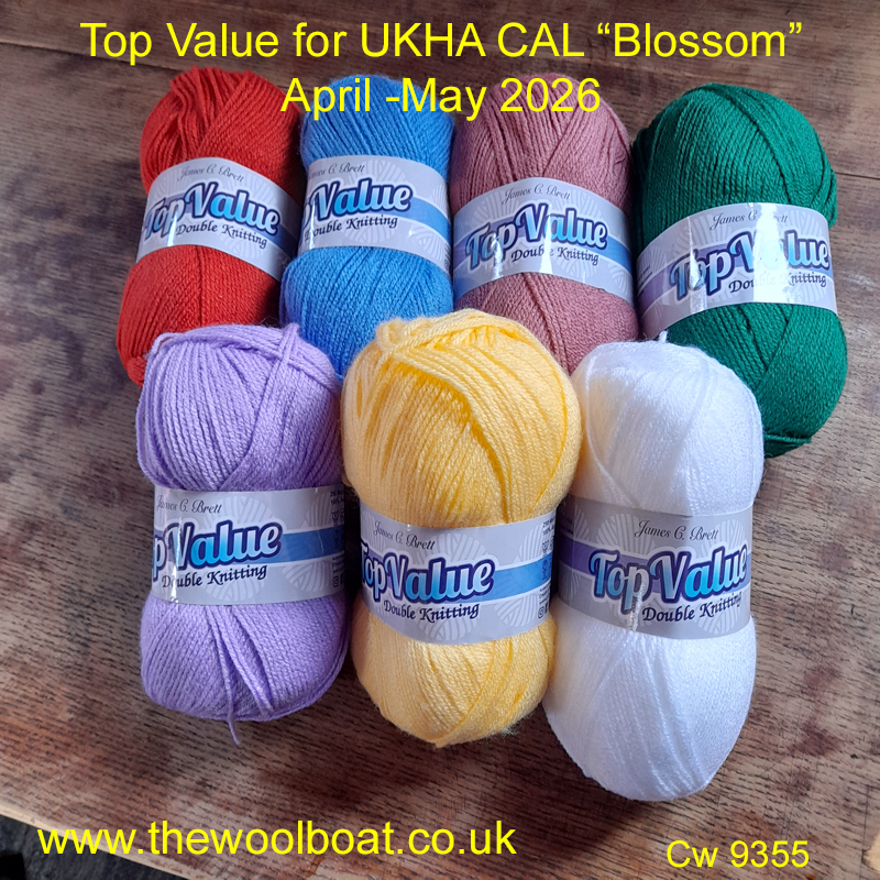 We have put together a pack of the seven shades of Top Value from James C Brett that can be used for this project. The pack contains 18 balls altogether in the required quantities of each shade. These may produce a brighter blanket than the one shown.