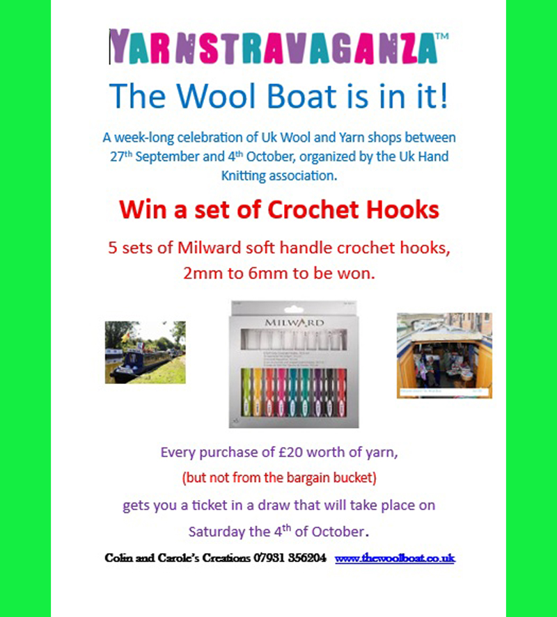 We now have a few more names in the hat to win a set off crochet hooks, but still, lots of time, until 4 o clock on Saturday when we’ll make the draw to win one of five sets of hooks.