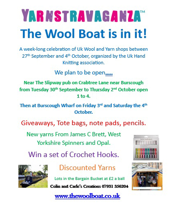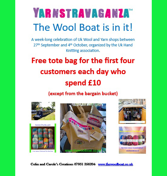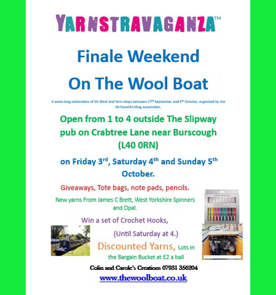 Yarnstravaganza Finale weekend on The Wool Boat, Friday, 3rd, Saturday 4th and Sunday 5th October 2025